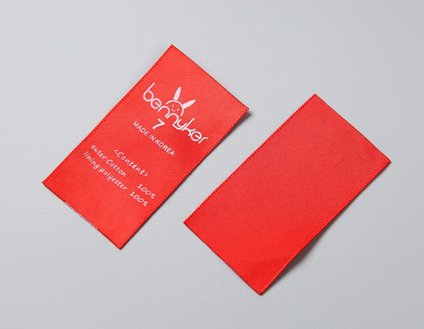 織嘜標(biāo)簽:是服裝服飾上使用特別廣泛的一種商標(biāo),是根據(jù)圖形的色彩而選用不同顏色的紗線在織標(biāo)機(jī)上直接織出來的一種商標(biāo),優(yōu)點(diǎn)是不掉色,因?yàn)槭峭耆椩谏厦娴?,有立體感,織的方式多樣,有檔次感,缺點(diǎn),周期長,對顏色要求嚴(yán)格的需要紗線染色,所以對起訂量有要求。